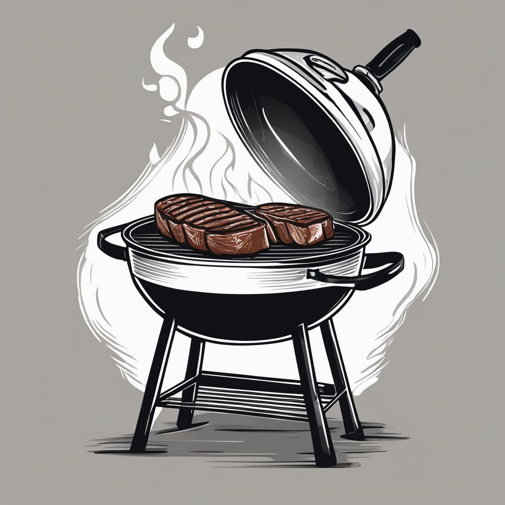 A.I. image generated from haiku text of stylized kettle grill with burnt steaks on the grate.